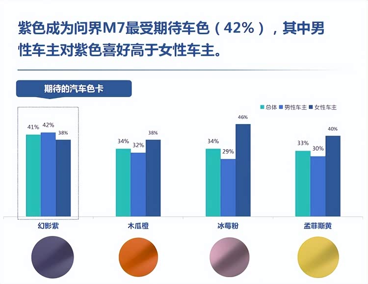 悬念的背后,是用户对个性化的强烈渴求。全球权威消费洞察机构尼尔森最新发布的汽车消费报告显示,车辆“颜值”在用户购车决策中的权重日益增加,而紫色已成为问界M7用户最期待的车色。更令人意外的是,报告指出男性车主对紫色的喜好甚至高于女性车主。这一发现打破了传统认知,也让全新问界M7选择“夜紫”新色显得更具深意,它不是简单迎合大众审美,而是在为用户提供更多元的个性选择。