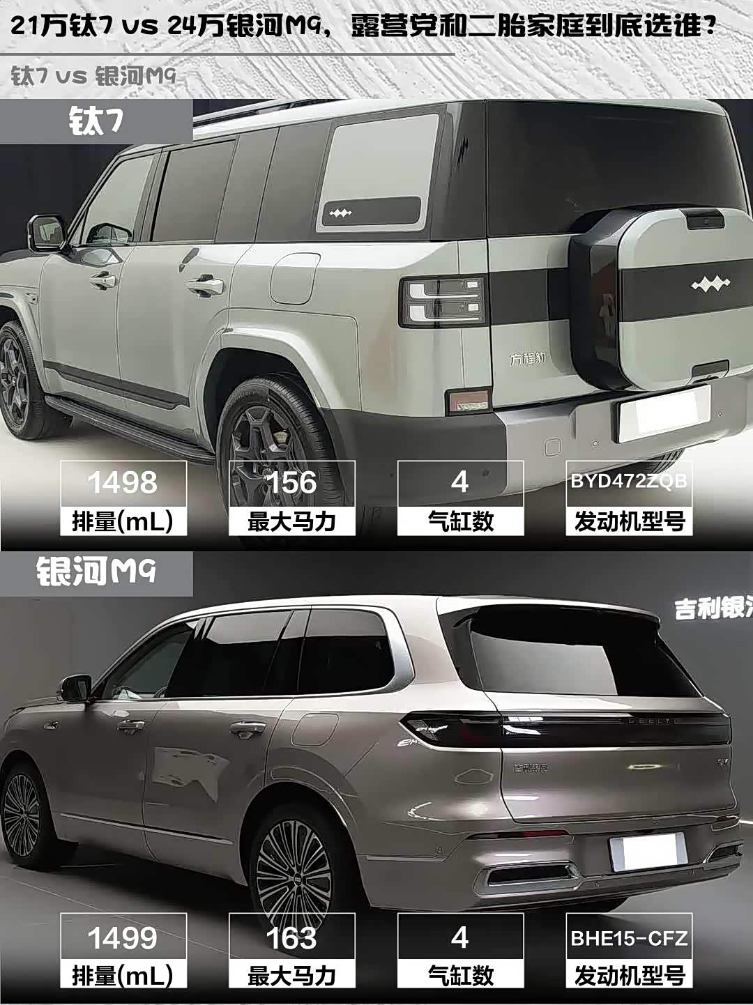 最后说个冷知识:钛7的车载冰箱能冰6瓶水,银河M9的冷暖杯架可以保温咖啡,果然都是懂生活的车!你们更倾向哪款?评论区见~