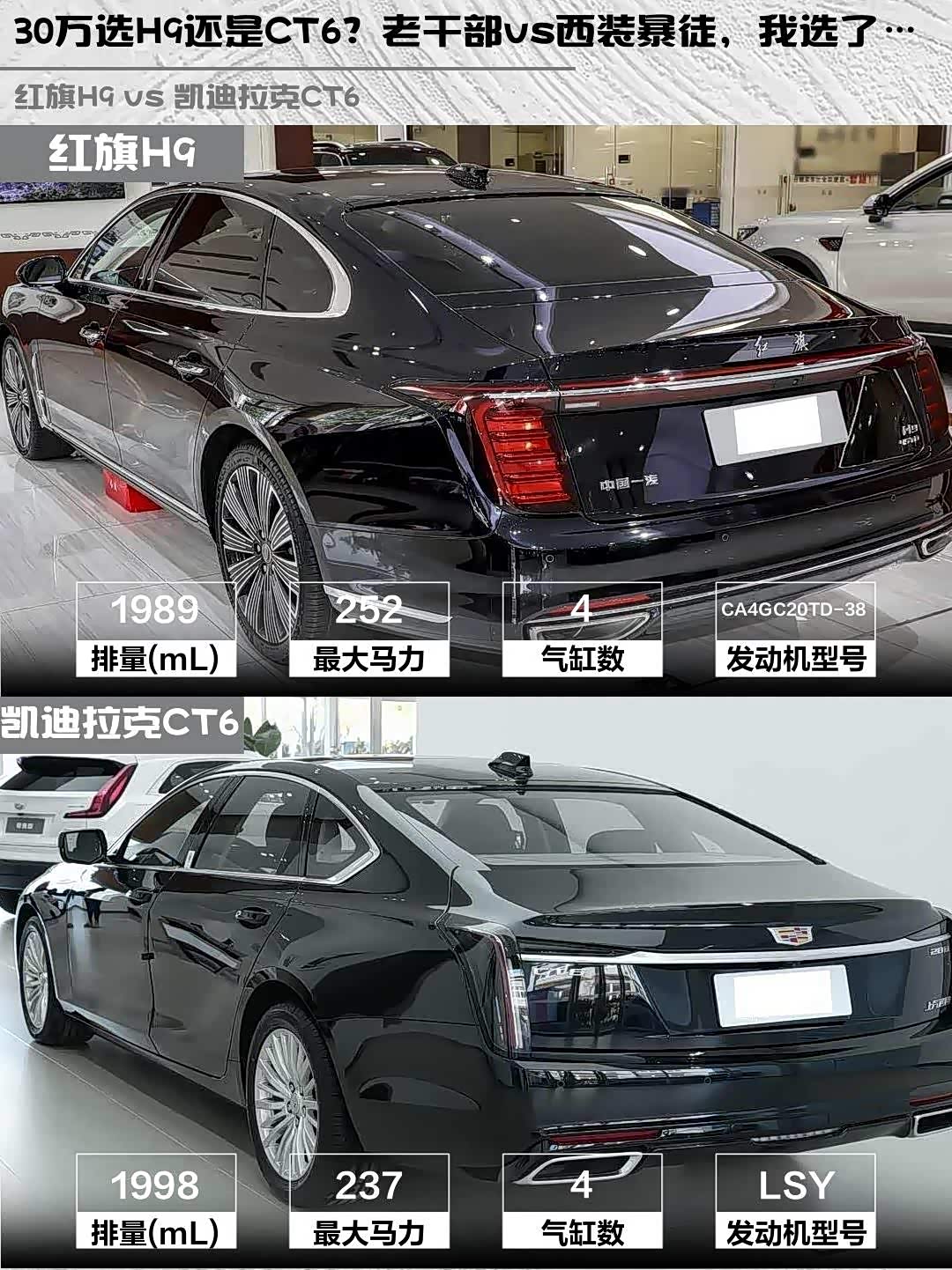 最近在红旗H9和 凯迪拉克CT6(参数|询价)之间纠结到秃头🤯?作为两款30万级豪华C级车代表,今天就从真实车主视角带你们盘一盘这两台"老干部"和"西装暴徒"的硬核差异!