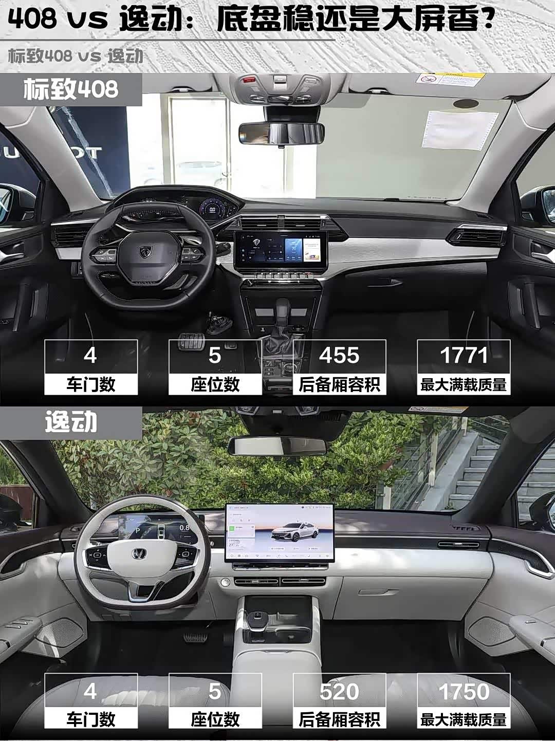- 追求驾驶质感选408:法系底盘+环保内饰,适合经常跑高速/看重操控的
