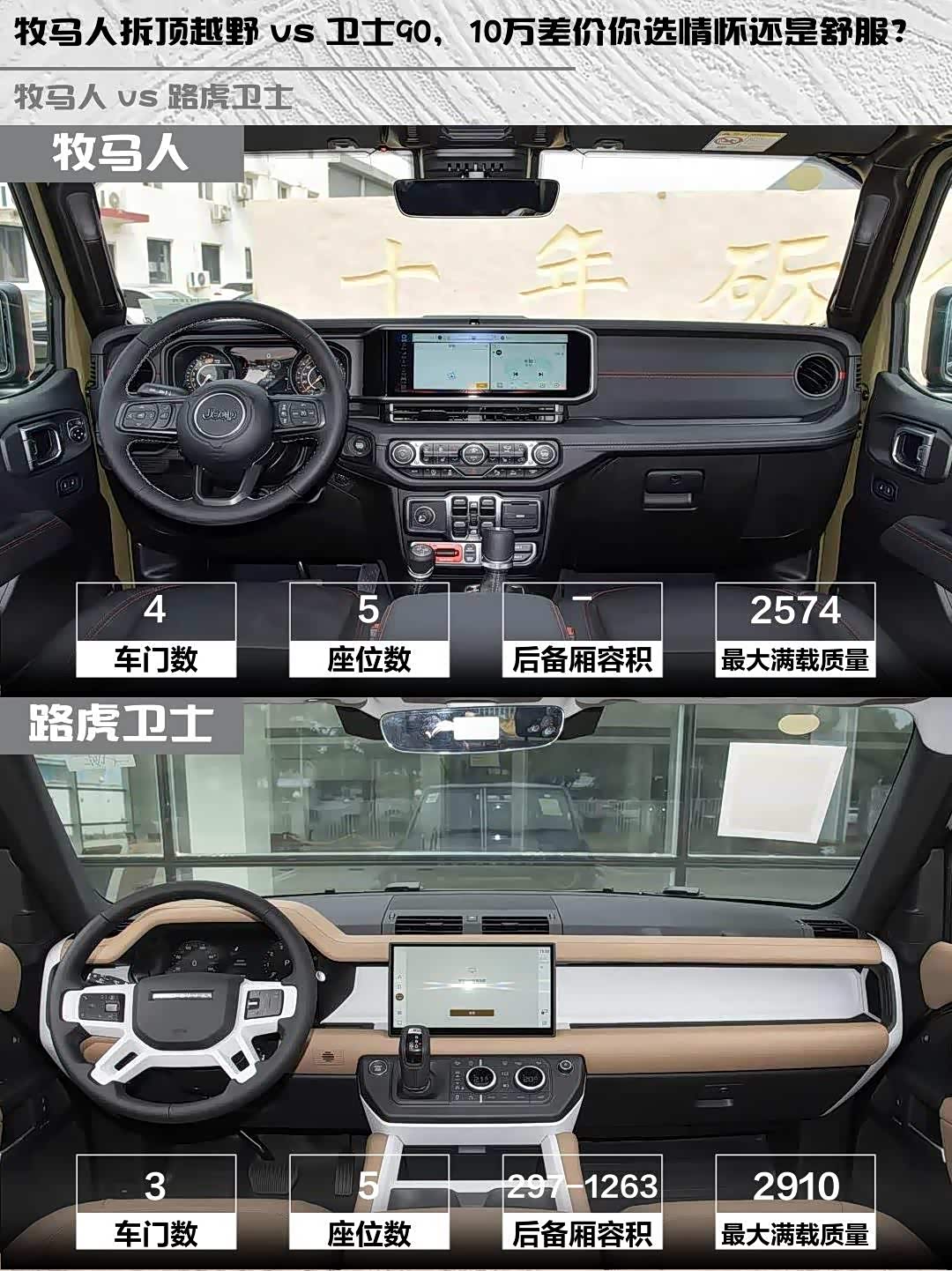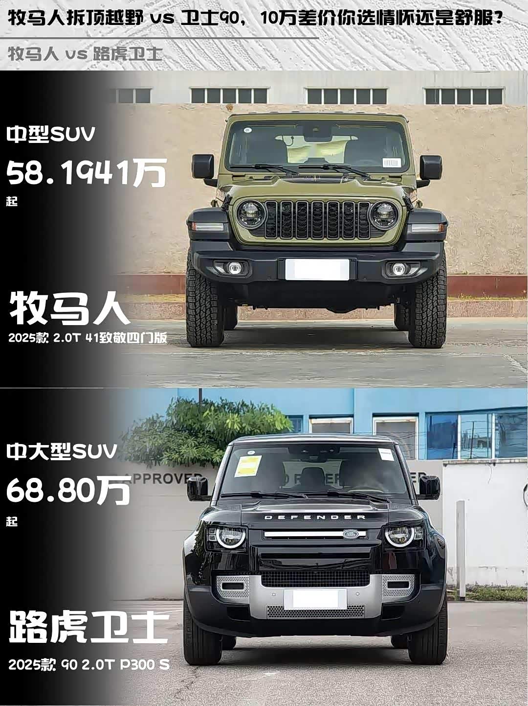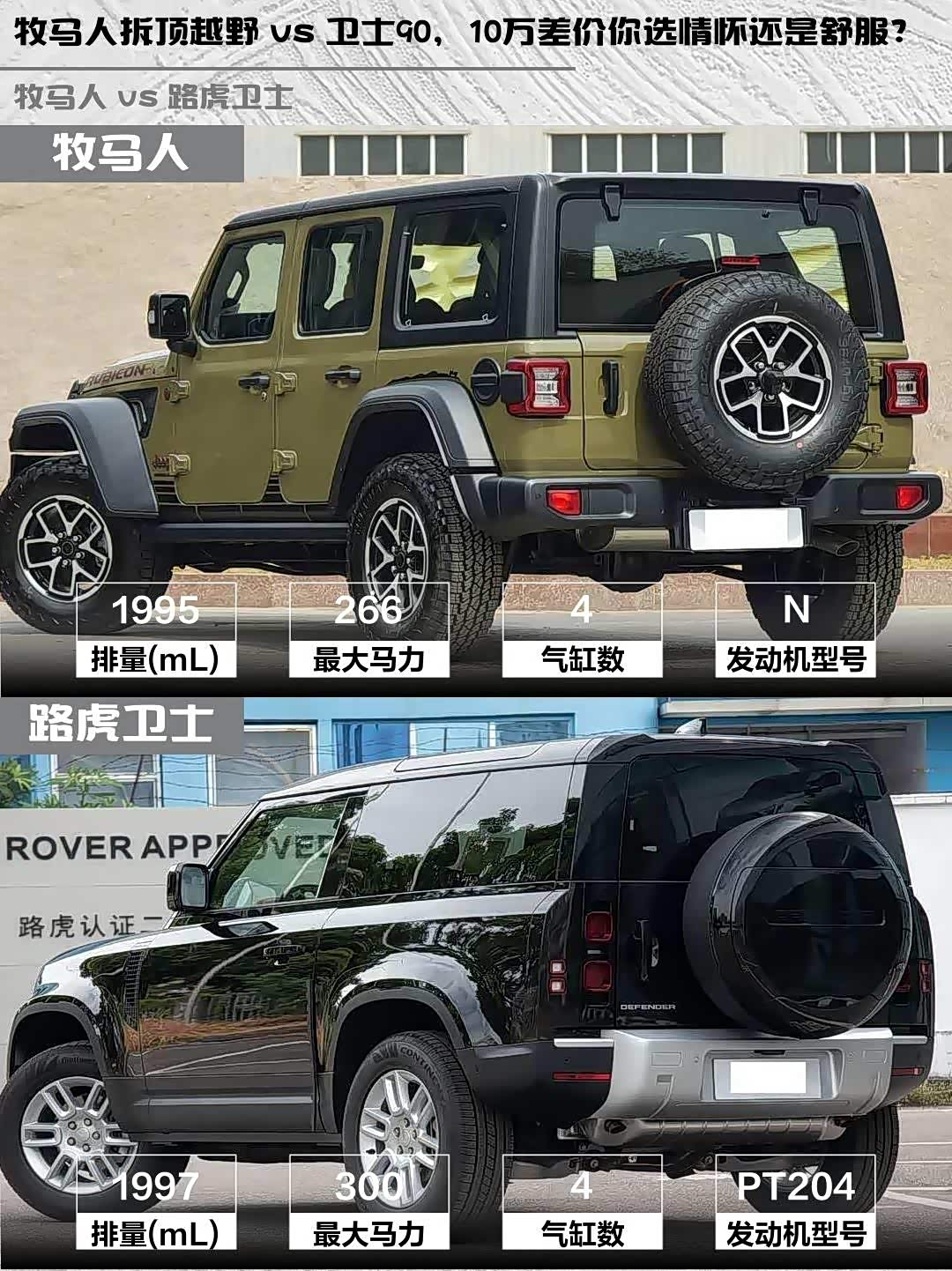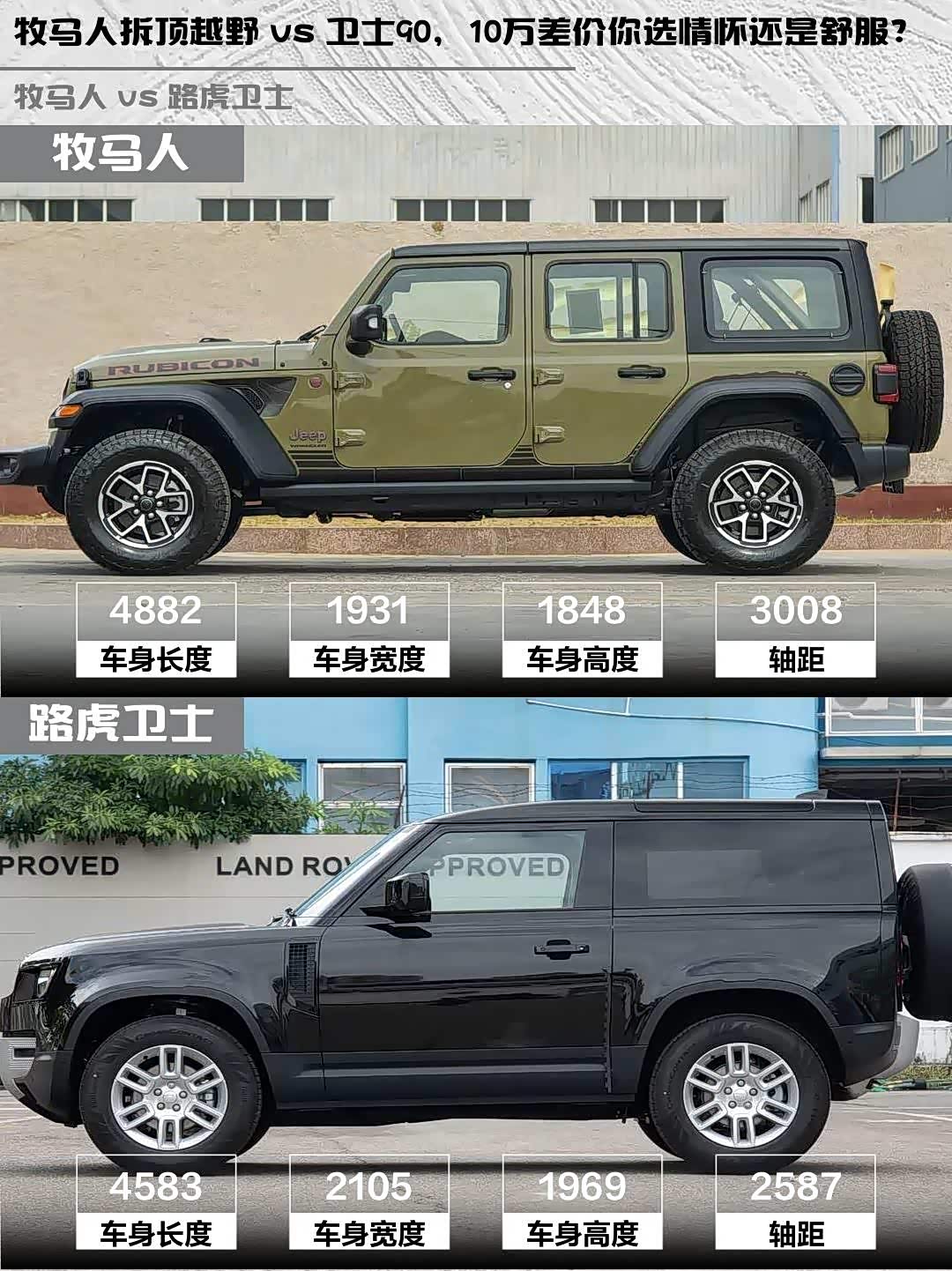 牧马人拆顶越野 vs 卫士90,10万差价你选情怀还是舒服?