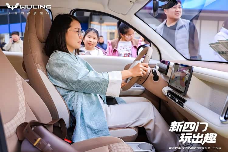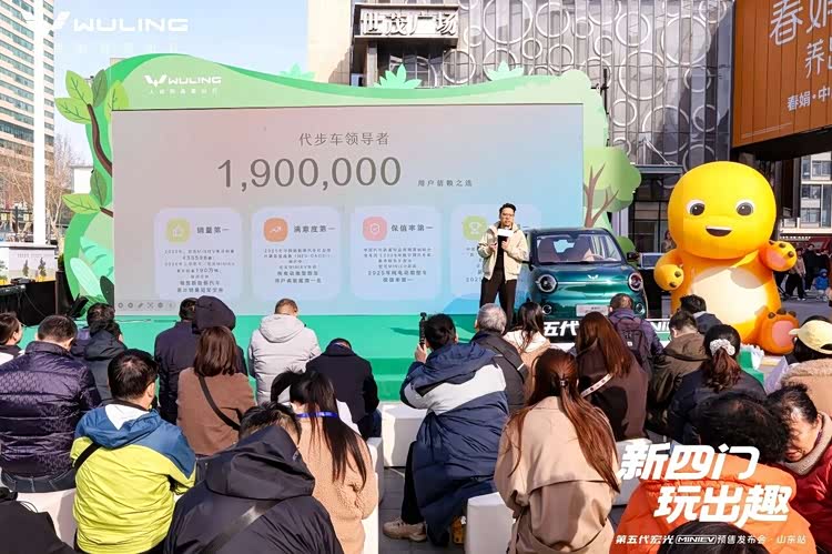 3月15日,“新四门 玩出趣——第五代 宏光MINIEV(参数|询价)预售发布会·山东站”于济南世茂国际广场正启。本次发布会特别携手Q宝与奶龙两大潮流IP,为现场注入了更多快乐基因。通过精心设计的静态展示与动态试驾环节,全方位呈现了新车的玩趣美学设计、“四门四座”空间表现、进阶驾乘舒适性以及全维安全守护表现,获得了现场体验者的高度认可。