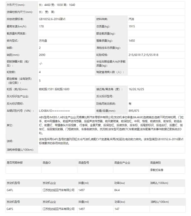 动力配置方面,新车申报了1.5L和1.5T两种动力,最大功率分别为84.4千瓦和147千瓦。