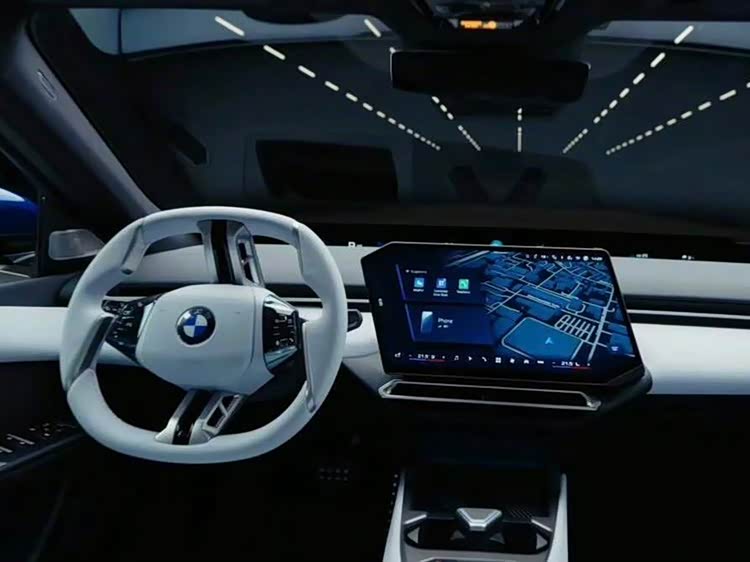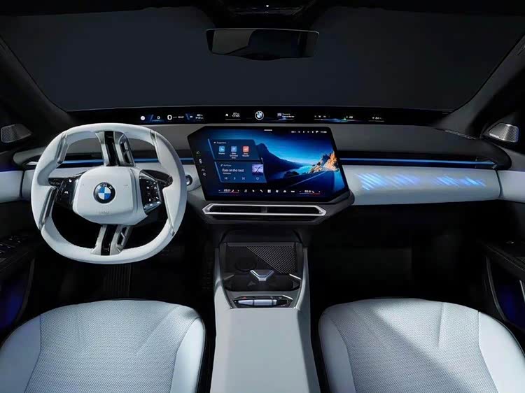 座舱设计与宝马iX3保持较高一致性,中控区域取消传统物理按键,大部分功能通过屏幕与语音系统完成操作。方向盘采用全新造型,功能区布局简化。中控屏采用异形设计,与驾驶信息显示区域形成分层结构,同时引入视平线全景显示系统,将关键信息投射至驾驶员视线前方。整体内饰风格趋向简化,强调信息呈现效率。