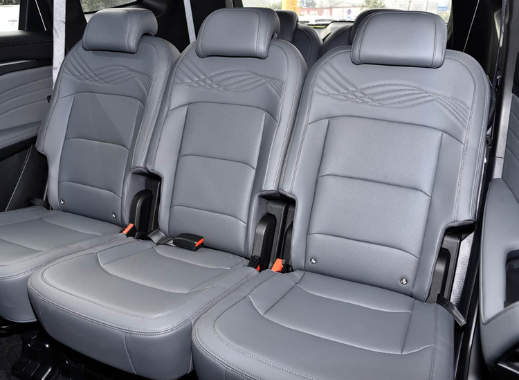 吉利豪越L,中型SUV,1.5T 7座入门款,网络上置换购车价9.54万元起。第二排3个座位一样大,也是左右2个座位配备ISOFIX接口。不过第三排的2个座位,并未见儿童安全座椅相关接口。好在二三排也可以完全放平。这个车,适合较大的小孩用增高垫,或者直接使用安全带。