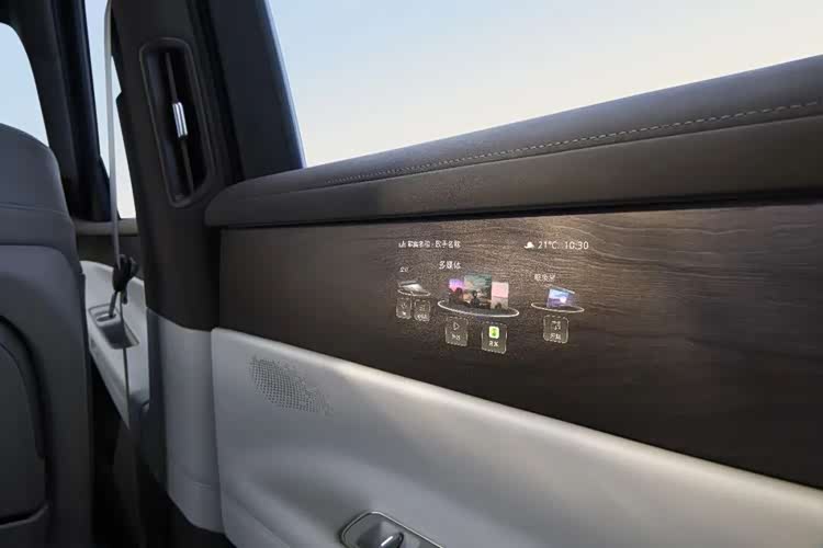 此次新车座舱名为“云栖智舱”,拥有行业首发的SmartSurface魔术屏,它通过微米级激光打孔技术,隐匿于木纹饰板之下,用户需要使用时会浮现出来。