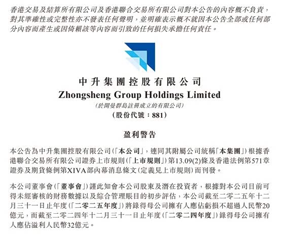 近日,一则公告让整个汽车圈炸了锅。中升控股,这个盘踞在经销商榜首多年的巨无霸,预告2025年净亏损不超过20亿元 。