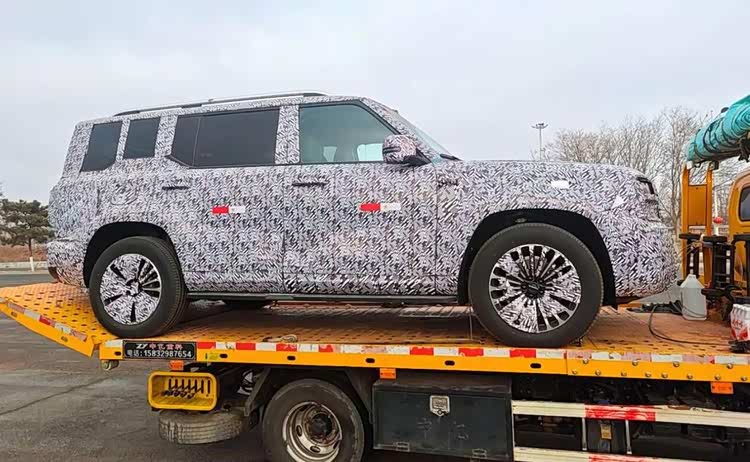 在车身的侧面,我们可以看到它方正的车身轮廓极具辨识度,车顶也非常的平整,新车的气场和哈弗H9有的一拼,有网友看到这款车的谍照的时候还表示它可能就是哈弗H9的插混版,这种可能性也不是没有。但是从谍照来看,它的C柱下方的位置有一个明显的另类装饰,和现款燃油版的哈弗H9有明显的不同。新车的车窗都采用了非常方正的轮廓,中间有硬朗的线条,它的离地间隙倒是没有像纯硬派越野车那样高,和普通的城市SUV差不多。