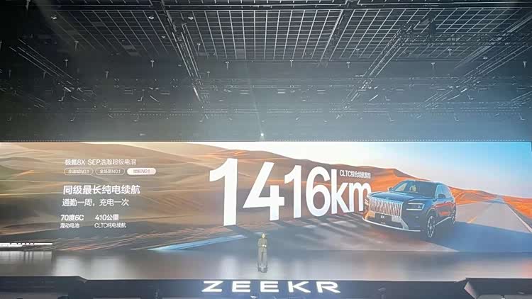 在续航能力方面,新车提供容量达55kWh或70kWh的6C混动电池可选,纯电续航里程最高可达410km,CLTC综合续航里程最高可达1416km。至于消费者同样关心的补能速度方面,新车亦搭载了此前由极氪9X率先采用的全栈900V高压架构,在6C混动电池配合下具备极高效率。