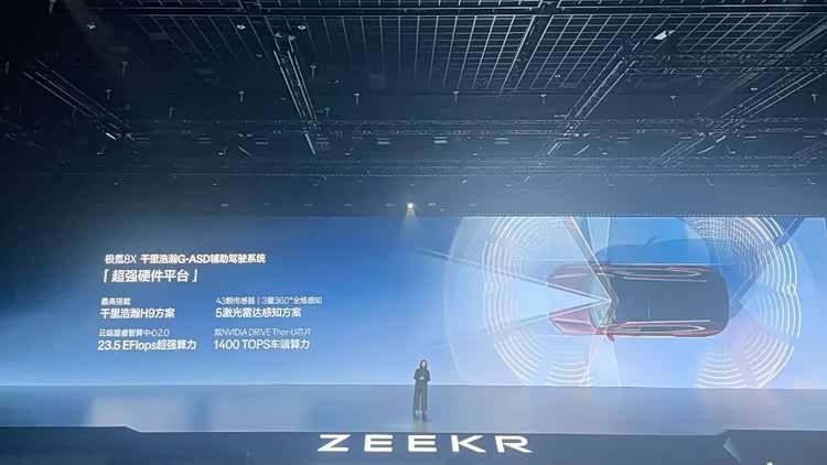 此外,该车的千里浩瀚G-ASD辅助驾驶系统依托2500万Clips高价值场景视频,包括5激光雷达在内的43颗传感器配合23.5 EFlops云端超强算力与1400 TOPS车端算力,可实现体验极为出色的全场景辅助驾驶功能。