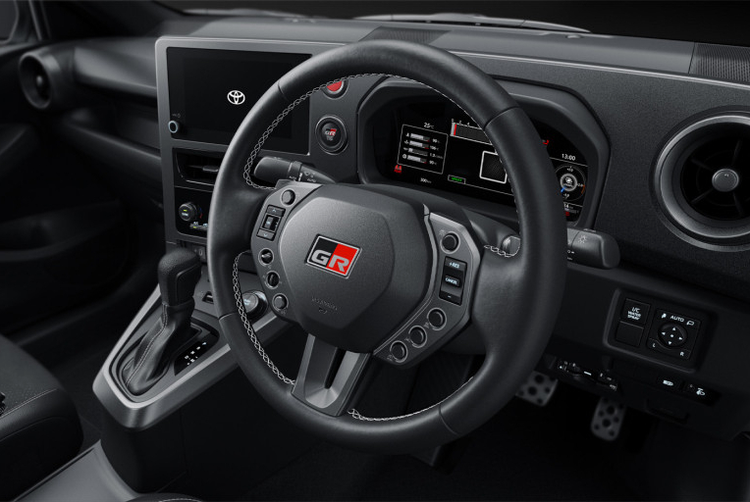 2026款最大的变化直接关系到驾驶者,来自全新的GR方向盘。这款方向盘由“职业赛车手”参与开发,采用菱形气囊盖设计,并将按键分离布局。