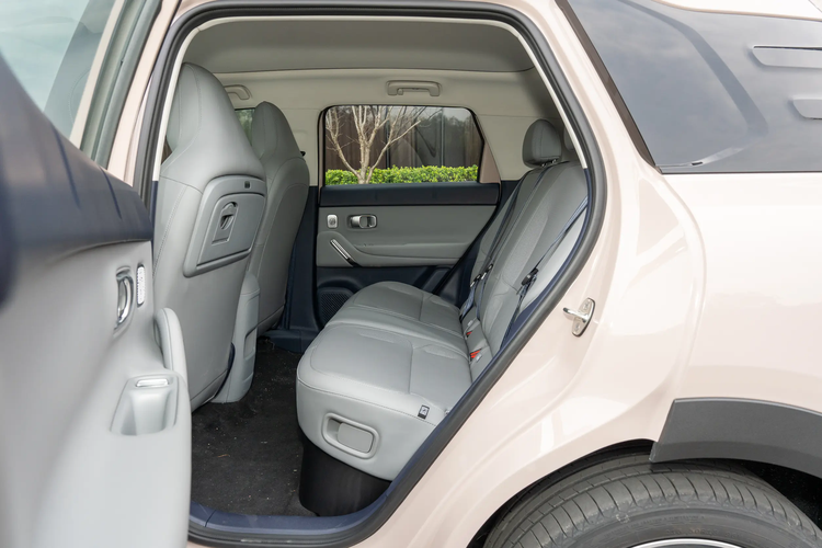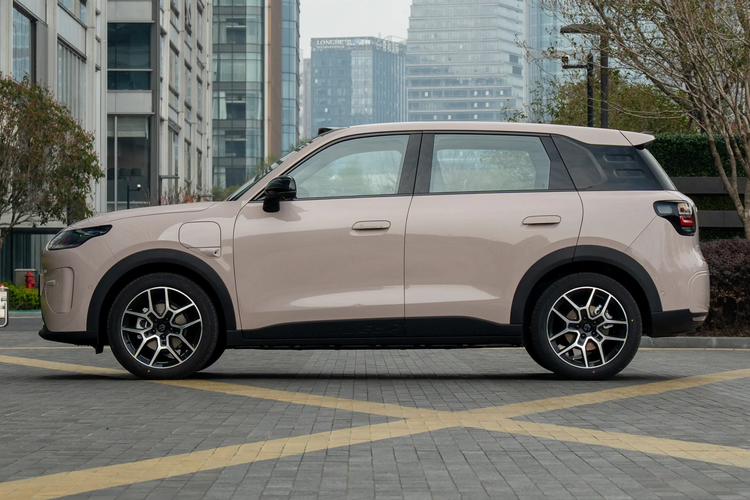 新车的侧身没有过多的线条点缀,看上去短小干练,黑化的D柱与C柱融为了一体,营造出了悬浮式车顶的视觉效果,另外,它还采用了半隐藏式门把手以及黑化的轮眉和侧裙,展示出精致的一面。值得一提的是,该车的充电接口被放在了左前翼子板处,后期使用起来会增加些许的不便。