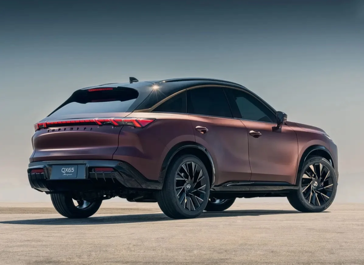 外观上,QX65借鉴了QX60的前脸底子,但换上了专属的分体式大灯,前保险杠也重新设计过,下部进气口看着更有冲击力,格栅的气场也比QX60强了不少。车侧绝对是它的加分项,溜背车顶线条很流畅,A柱往后的造型带着股肌肉感,再配上棱角分明的后挡风和造型特别的尾灯,把当年FX系列的动感劲儿完全找回来了。车顶轮廓的铜色饰条、亮黑车顶再加上特殊车漆,质感也拉满了。