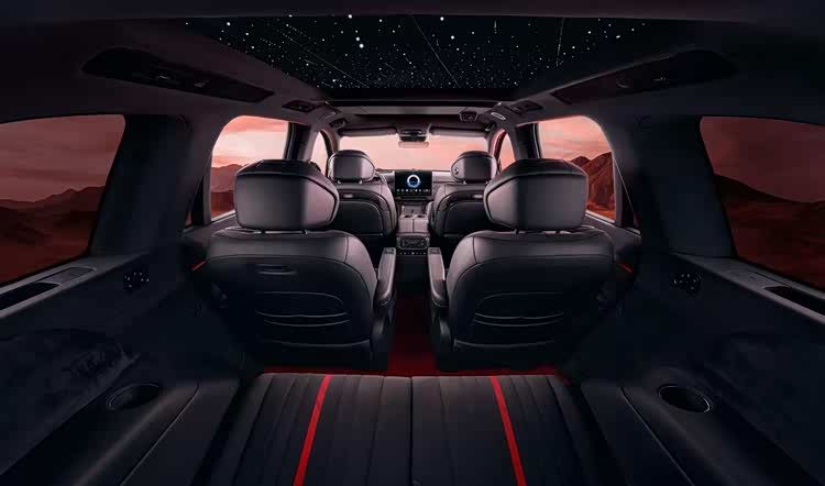 内饰更是将东方美学渗透进每一处细节。大面积“丹墨”底色中,座椅缝线与头枕处保留“丹砂”点红,不张扬却足够醒目。黑水晶材质的按键、汲取“流云纹”光影技法的饰板、以及与百万级豪车同源的598颗灯珠星河天幕星空顶,都在诉说着一种属于中国人的豪华格调。