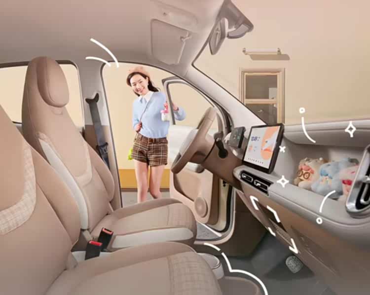 中控屏尺寸从8英寸升级到10.1英寸,搭载了全新的萌趣UI,支持小憩、露营、雨雪、宠物四种场景模式一键切换。手机App远程控制、无感进入、智能上下电等功能都安排上了。更值得关注的是,官方明确车机系统未来将通过OTA升级,支持苹果CarPlay、华为HiCar、CarLink三种手机互联方式,这在同级别微型车中并不多见。副驾驶前方还设计了“百变造景空间”,可以自由摆放手办或调整主题造景,算是迎合年轻用户个性化需求的巧思。