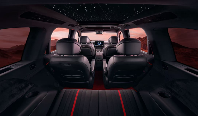 泰山黑武士版的上市,更是岚图对中式豪华的全新诠释。在承袭 Ultra 版全量软硬件的基础上,黑武士版以 “天地共雅” 设计哲学为核心,纯黑车漆搭配熏黑套件,玄镜万象格栅、天地星芒轮毂尽显东方美学的内敛锋芒;内饰的丹墨配色、墨晶璀璨按键、星河天幕星空顶,将山水意境与科技豪华完美融合,让中式设计成为高端豪华的新表达。这种将文化自信融入产品设计的做法,打破了外资品牌对豪华定义的垄断,为中国高端汽车树立了全新的美学标杆。