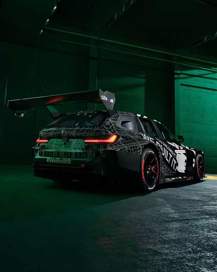 宝马M赛车运动部的工程师们,用16周完成了从量产车身到赛车化改装的流程,而之所以令车迷惊讶,是因为这个办事效率刷新了品牌纪录。这台车并非简单改装,而是以M3 Touring量产车架为基础,全面共享M4 GT3 EVO技术平台,核心部件、底盘架构、动力调校完全对齐顶级GT3赛车标准。该车比M4 GT3 EVO长200mm、含尾翼高32mm,保留了标志性的“大屁股”造型,成为赛道上最独特的存在。