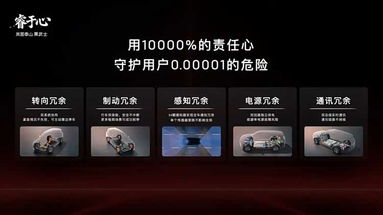 此外,车辆不仅深度融合华为乾崑ADS系统,更在转向、制动、感知、通讯和电源五大核心维度,全部配备了顶级的安全双冗余设计。这种独家配置真正实现了系统级的稳如泰山。对于追求极致安全的高净值家庭而言,这无疑是当下最稳妥的智驾首选。