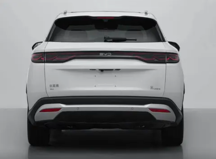 车身侧面线条流线感不错,溜背造型加半隐藏式门把手,轮眉微微往外扩,裹着黑色饰条,硬是挤出点跨界味道。车尾还是贯穿式尾灯,“中国结”元素,晚上点亮后辨识度不低,整体看上去敦实厚重。