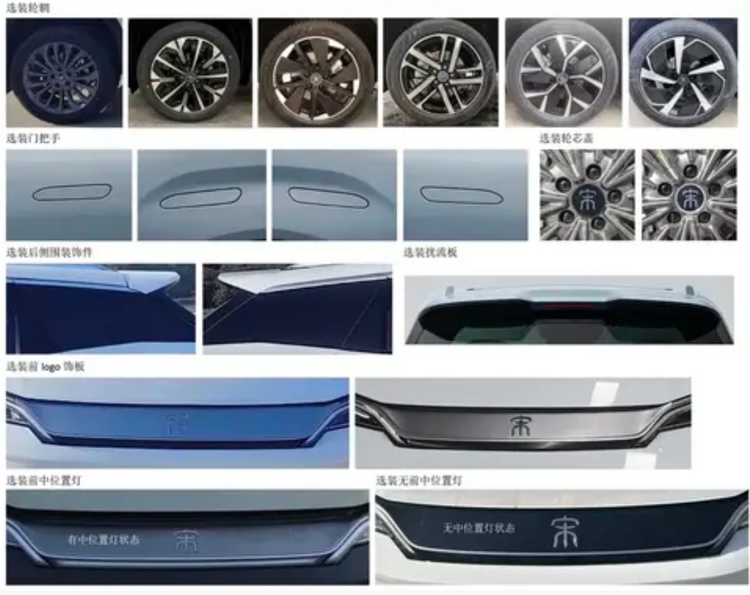 从申报图看,新车长着一副纯电版的脸。前脸封闭式格栅,中间是那个“宋”字小篆标,贯穿式LED日行灯把车头视觉宽度拉得很开。下包围两侧的三角形熏黑导风槽,配着梯形下格栅,层次感是有的。