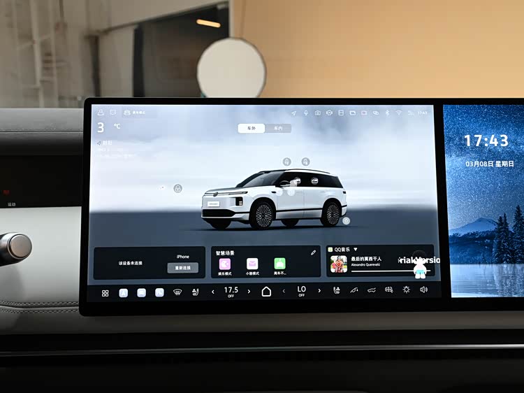 •屏幕配置:15.6英寸中控主副驾双联屏、21.4英寸后排可折叠吸顶屏(配备视角补偿膜)、Smart Surface魔术屏(微米级激光打孔隐于木纹饰板)。