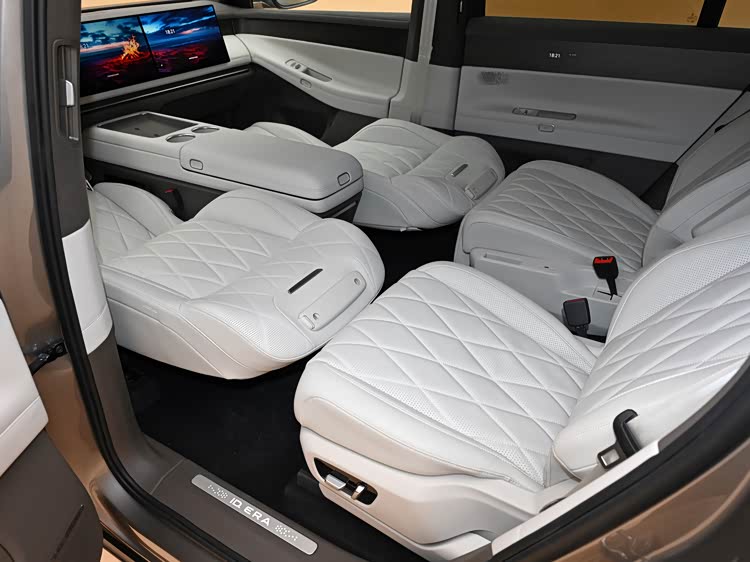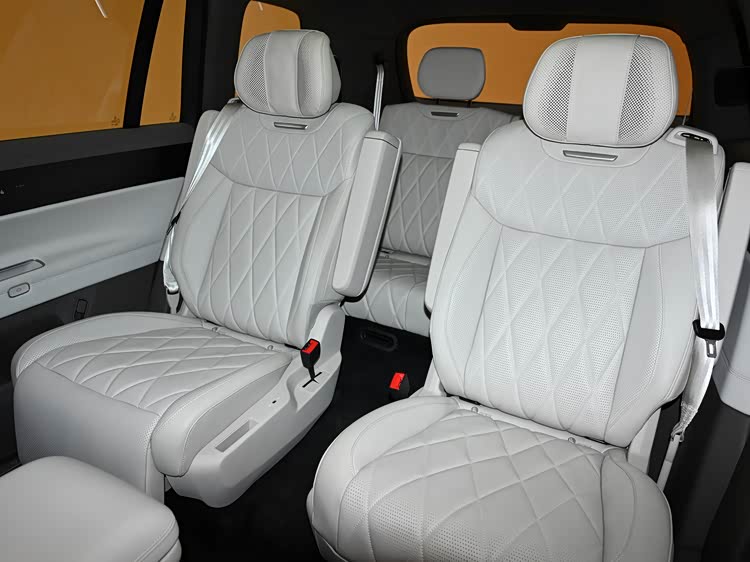 •座椅系统:三把零重力座椅,二排副驾侧支持动态零重力功能,集成12L坐垫气囊、集成式安全带。