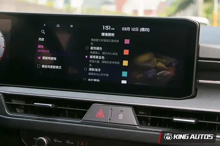 64色可调气氛灯,懒得调可以选现成的,也可以跟驾驶模式连动。