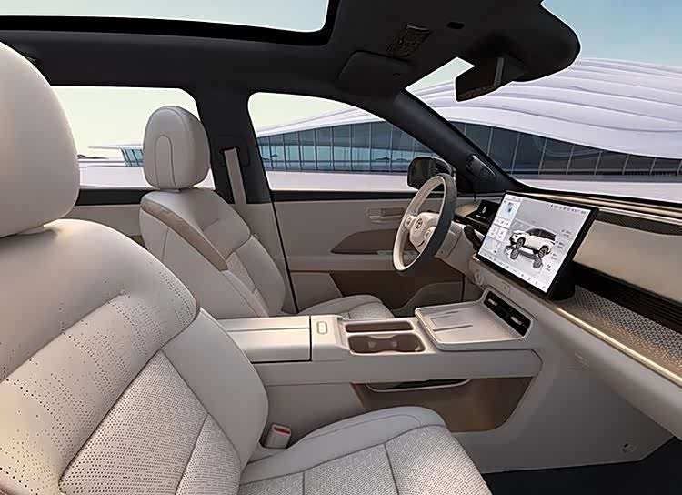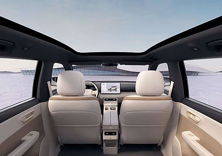 前脸为封闭式低风阻设计,两侧头灯组采用流行的分体式布局,独特的“C”形贯穿式日行灯具有极高的辨识度。此外,车顶配有激光设备,并配备254TOPS的英飞达芯片,采用Momenta智驾方案,未来还将应用端到端的大模型技术。