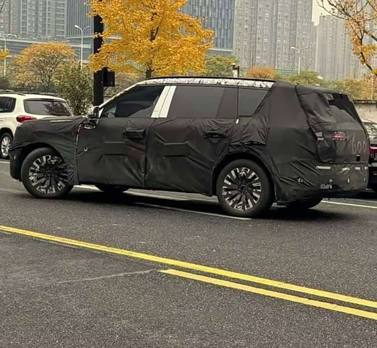 从谍照中可以看出,新车设计硬朗,车身线条横平竖直,呈现出独特的风格。车顶搭载激光雷达,预示着该车将拥有高级智能驾驶功能。侧面轮廓同样方正,符合其大型SUV的定位。