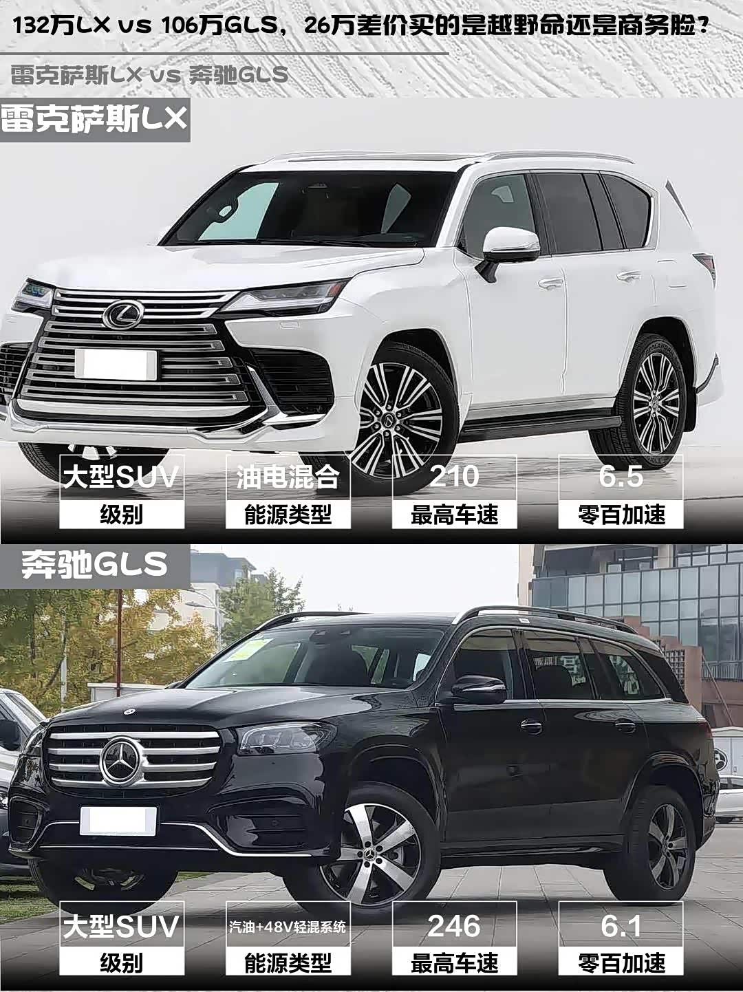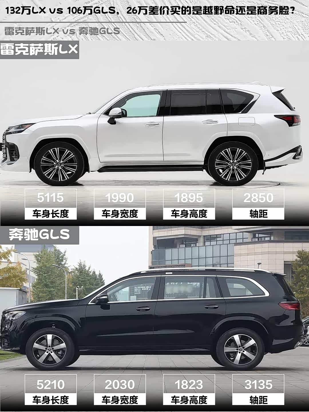 个人建议:经常跑烂路/注重耐用性选LX,主要城市通勤/商务接待选GLS。话说你们会更倾向哪种豪华风格?
