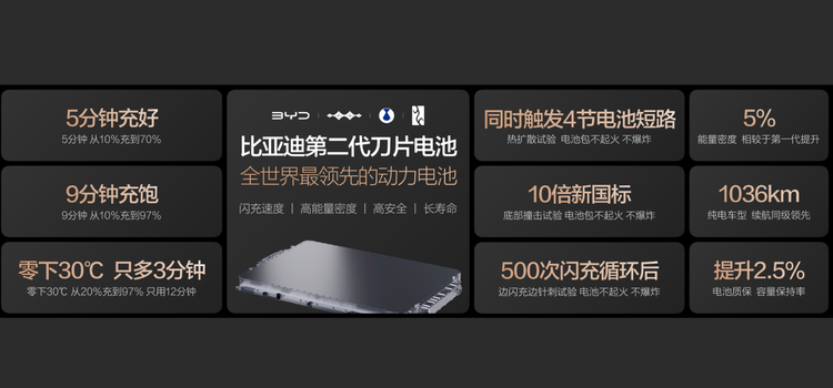 在技术研发方面,比亚迪同样没有放慢脚步。农历开年后,比亚迪以一场酣畅淋漓的第二代刀片电池与闪充技术的发布会,将电动化上半场最后一块短板补齐。5分钟充好、9分钟充饱,-30℃只多3分钟——这一技术,实实在在的将补能与加油做到了同速,消费者对于新能源车的最后一丝顾虑也被打消!