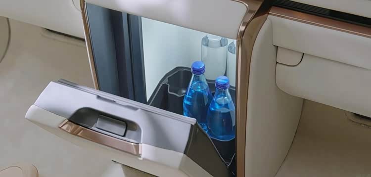 配置优化是本次改款的核心亮点,所有调整均聚焦细节体验提升。新车新增第二排迎宾照地灯,当侧滑门打开时,会自动照亮车门下方地面,既避免夜间上下车踩坑,又增添了出行仪式感。同时,新车换装新静音轮胎,采用全新胎面花纹,专门针对路噪进行优化,进一步隔绝外界干扰,提升行驶静谧性。此外,车载冰箱内部增加柔韧弹性材料制成的新型支架,呈波浪形设计,可固定不同尺寸的瓶装饮料,防止行驶中碰撞产生噪音,细节之处尽显豪华考量。