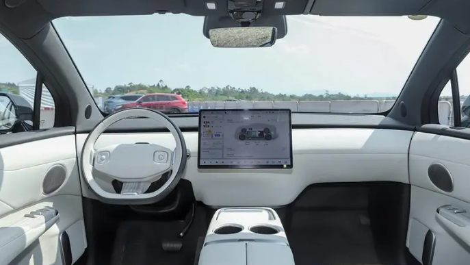 进入车内,长安启源E07的内饰设计延续了极简美学。中控台整体设计非常简约,取消了传统仪表,行车信息通过HUD功能显示,配合15.4英寸中控大屏和8155车机芯片,互联体验达到主流水准。