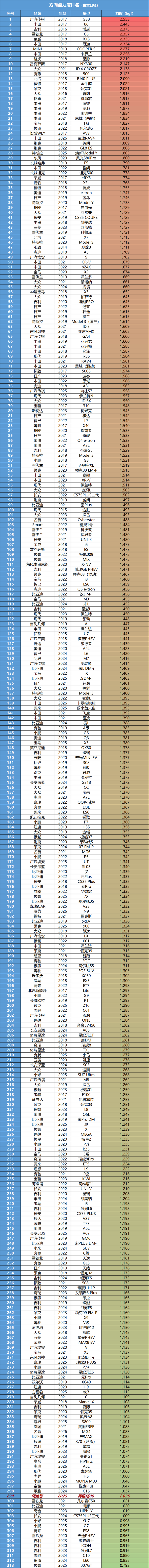 这辆车在舒适模式下,原地转向力为1.035公斤。低速转向和停车入位,相当轻松。