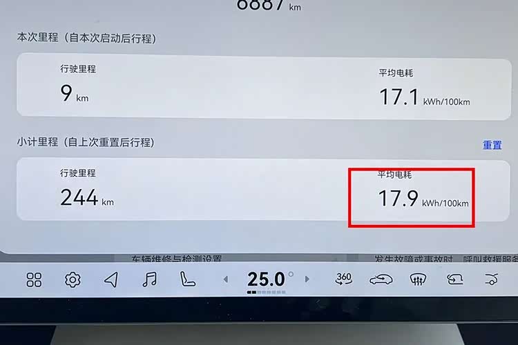 根据表显近百公里的平均电耗17.9千瓦时,由国标计算公式可以得出,按照燃料生命周期计算,当量汽油百公里消耗为4.29升;如果按照二氧化碳排放量计算,当量汽油百公里消耗为5.55升。