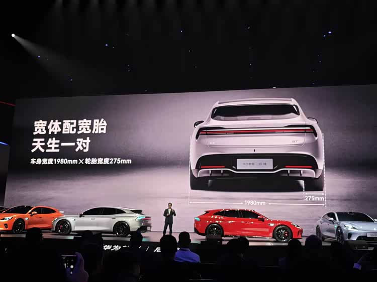 5050*1980*1470mm的车身尺寸,3000mm的轴距,轴长比超59%,轮高比≥51.2%,黄金猎装角21.5°,这种超跑比例,让它既有优雅的姿态,又有强烈的运动气场。尤其是百万跑车级的宽体后轮包,配合275mm的胎宽,光看侧面,就足以让人眼前一亮。