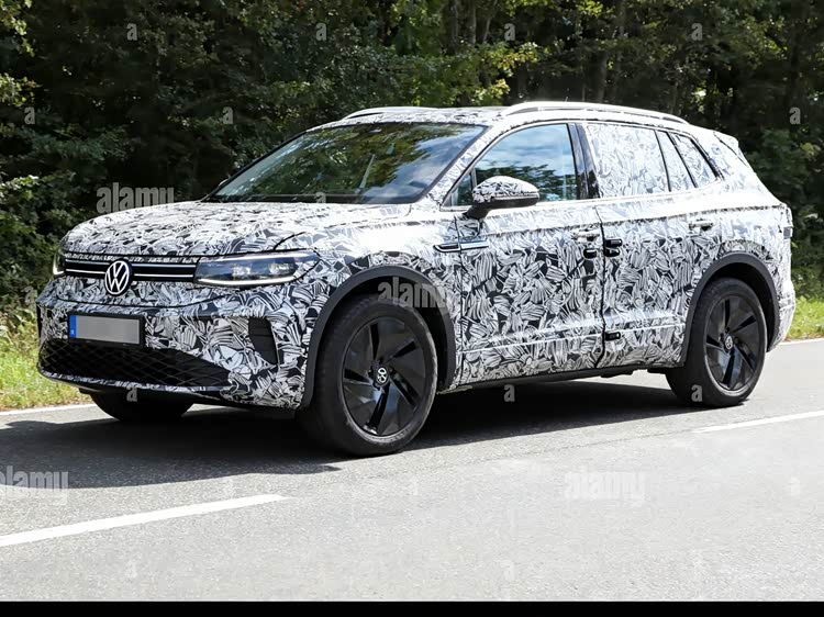 配图生成规则:生成新款ID.Tiguan的伪装车谍照风格图片,车型为SUV,logo为大众,不出现完整实车,无老款车型元素。