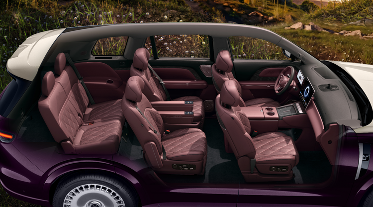 内饰以墨色为主,缝线和头枕用了丹砂红点缀,还有层叠线条的工艺,细节里透着精致。车顶是星河天幕,598颗灯珠组成星空效果,晚上坐车里氛围感直接拉满。