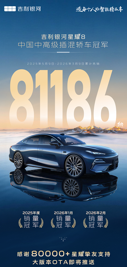 就在刚刚过去的2026年头两个月,吉利银河星耀8又毫无悬念地拿下了销量冠军!自2025年5月上市以来,这款被称为“中国中高级插混轿车冠军”的车型,累计销量已经突破了81186台。能在这片红海市场里杀出一条血路,靠的绝不仅仅是运气。还给所有星耀8车主送出了一份大礼,Flyme Auto 2智能座舱系统的大版本OTA推送马上就要来了!这可不是简单的修修补补,而是从底层架构开始的全面革新。