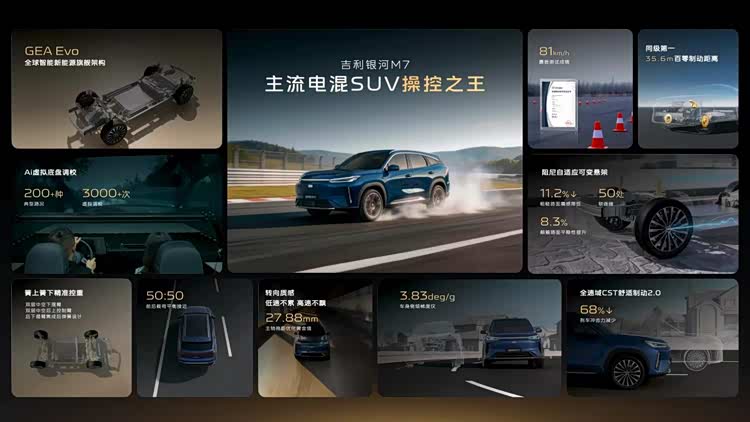225km纯电+1730km综合续航+81km/h麋鹿成绩吉利银河M7技术首秀