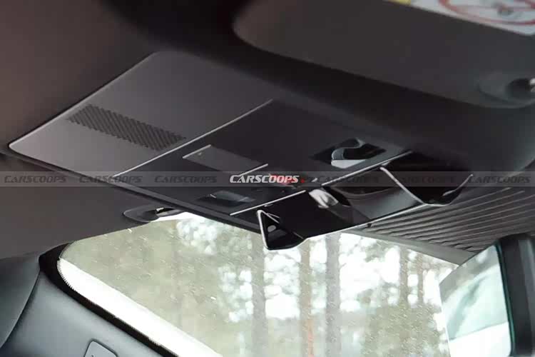 而怀挡机构,已经隐约可以看到,采用了平直的造型,有些像全新奥迪Q3,由此而来,可以确定的是扶手箱前端区域即将会经过大改,或将提供更加充沛的储物能力,而方向盘正像前面所述,明显是试装状态,内侧的造型还没有确定,但整体的气质似乎要更加平直一些,显得更为硬朗,这也可能是全新路虎家族风格的转变。此外,车顶眼镜盒区域似乎还有着特殊设计,具体的功能有待解答。
