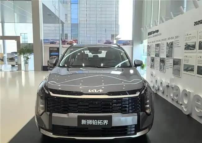 刚到起亚4S店门口,就看到一辆凌霜灰的新狮铂拓界停在展区,这颜色在阳光下真亮眼。走近细看,前脸那个Star-Map LED投射式前大灯组配上横贯式的中网,看着比图片上硬朗大气,挺有辨识度。