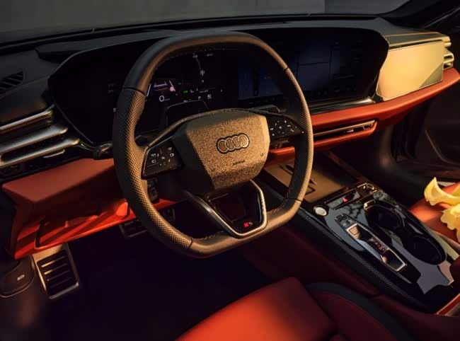 一汽奥迪A5L内饰设计风格兼具科技与豪华,该有的科技化装备并未缺少,比如全液晶仪表盘、大尺寸中控屏、高配车型还提供副驾娱乐屏及HUD抬头显示等,并且车机也支持目前比较流行的智能语音识别、车联网、OTA升级,以及手机互联功能,能够拓展车机应用生态,而且实际操作屏幕的响应速度也快了很多,另外在车外能够借助手机APP实现远程控制,比如锁止车门、开启空调、查询车况等。