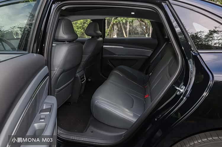 在空间方面,其实两台车在定位方面是有差异的,作为一台A级车,小鹏M03的2815mm轴距其实已经有些超标了,加上它大掀背的设计、有比较平整的地板,二排的腿部空间在大部分情况下也不会有什么压力,只是坐满一车出游的话,这中间位置还是稍显拥挤。
