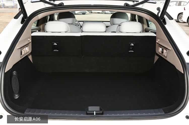 长安启源A06则同样带有电动掀背尾门,而且它除了更大的656L标准容积外,后备厢下面带有81L的隐藏储物,能放一些不常用的工具或是在露营时收纳些贵重物品;而车头还有108L的电动前备厢,除了能实现干湿分离储物外,也意味着行李、装备、食品等等都能分区同步装车,春游路上都不需要作取舍了。