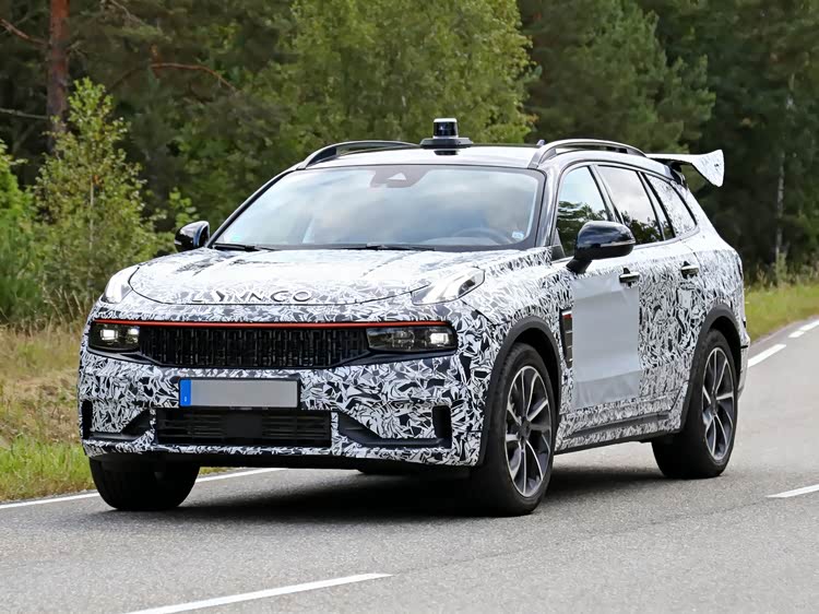 配图生成规则:生成领克07旅行版低伪装路试谍照风格图片,车型与logo准确,不出现完整实车。