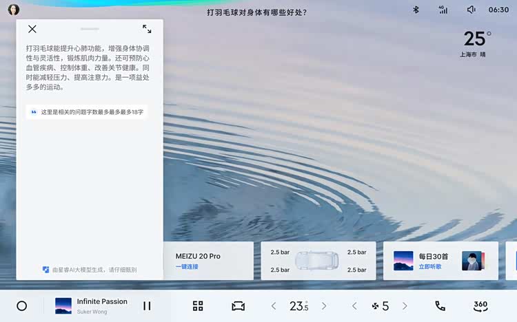 此外,车机还升级了银河Flyme Auto系统,高德地图新增绿波出行功能,可提前预知红绿灯倒计时并引导绿灯通行;新增洗车模式、服务大厅一键救援功能,手机端银河精灵还能将导航、文章一键同步至车机,进一步提升用车便捷性。