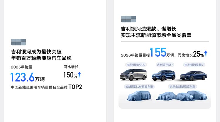 编辑点评:过去的一年,吉利汽车增速飞快,车型产品也几乎涵盖主流消费价格区间;在2026年,吉利汽车将带来更多的车型,以挤进或开拓的各个细分市场,更好地衔接各车型之间的空白。超10款的新车里,您更期待哪款?(文:VITAMIN)