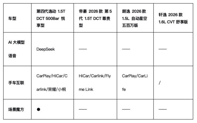 反观轩逸仅配备8英寸中控屏和4.2英寸仪表,缺乏手车互联功能,语音控制也仅限于基础操作。朗逸虽然屏幕尺寸尚可,但车机系统的开放性和娱乐功能与逸动相差甚远。帝豪在智能化方面有所建树,但在AI大模型应用和手车互联的兼容性上,仍不及逸动来得全面先进。