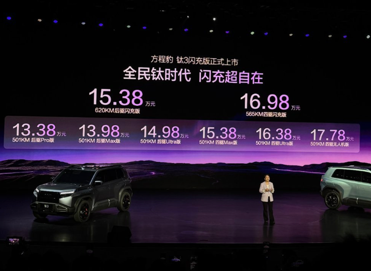 刚刚上市的新款 钛3(参数|询价),是75.6度的长续航版本。从最新公示来看,还有款二代刀片电池的低配版本。